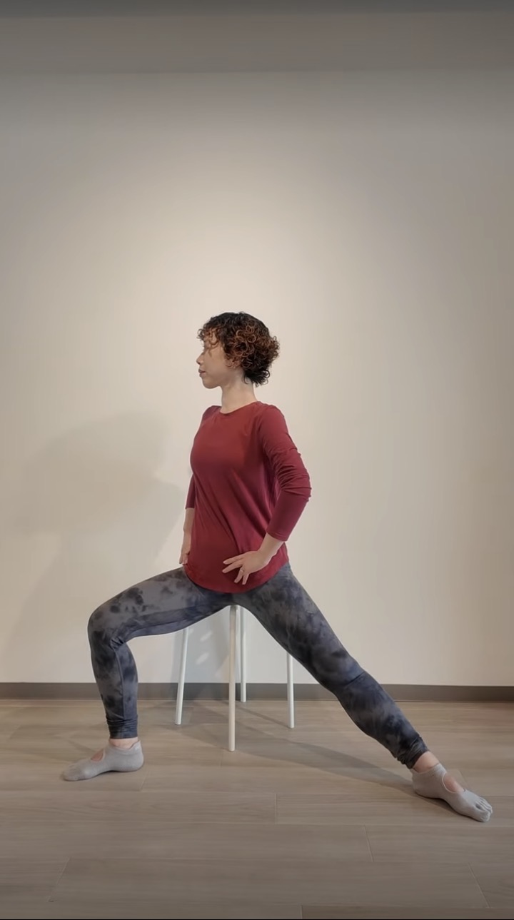 捻る前側の足は動かさないようにし、骨盤をしっかり立てて腰で回さないようにしましょう。